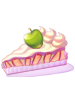 Кусочек свежеиспечённого яблочного пирога со взбитыми сливками и ярким желе в виде наливного яблочка.